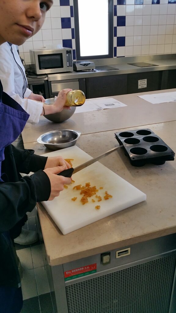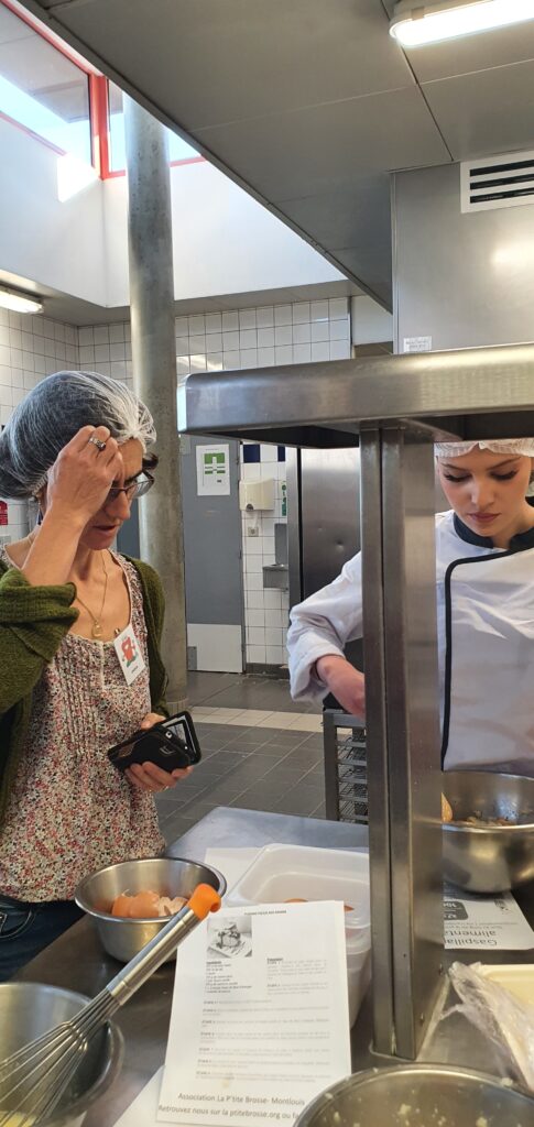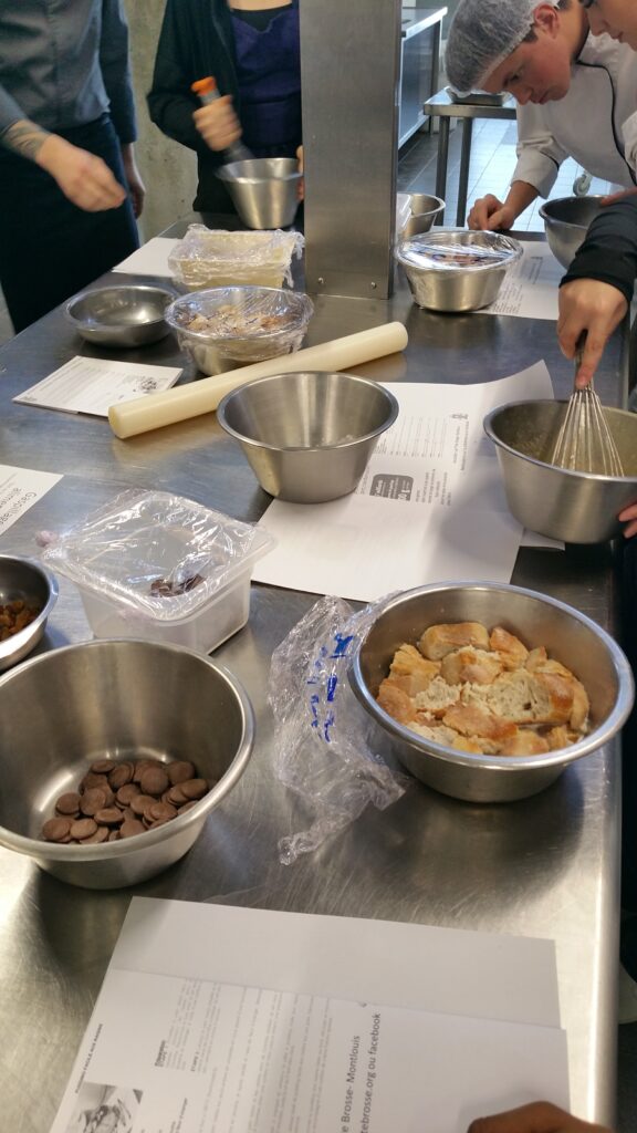 Nous avons été accueillies au Lycée professionnel Chaptal d’Amboise le 18 décembre pour animer un atelier autour de la thématique du gaspillage alimentaire auprès d’une vingtaine d’élèves de cuisine et de service. Le temps pratique: réaliser 5 pouddings avec le pain (« perdu ») récupéré au restaurant du lycée sur 10 jours: 1,2 Kg de pain ont été collectés pour l’animation. Ce fut l’occasion d’échanges sur le sujet du gaspillage alimentaire en France et les moyens de le diminuer, dans les foyers et en restauration collective. Un grand Merci à Gaëlle Langlois et Bastian Iragne de leur accueil et de la co-organisation.